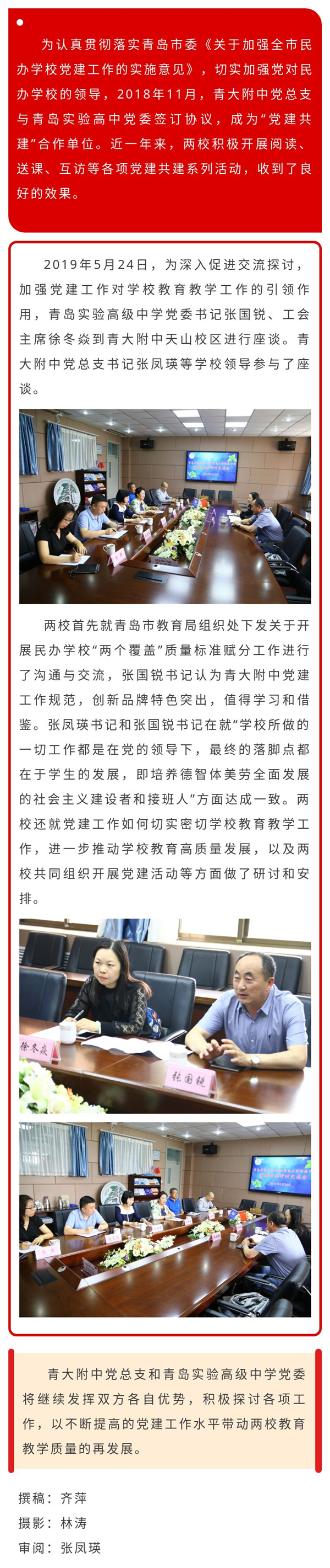 黨建共建 共促發展——青島實驗高中與青大附中黨建共建研討交流會