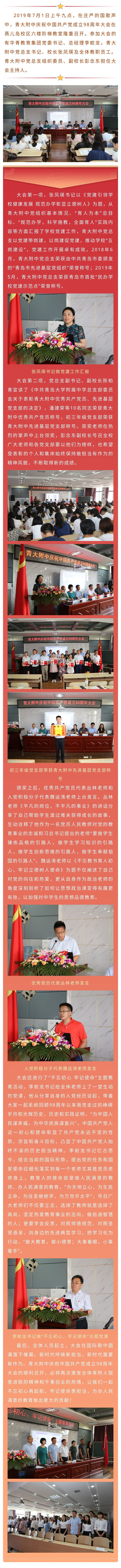不忘初心再起航 牢記使命勇?lián)?dāng)——青大附中慶祝中國共產(chǎn)黨成立98周年大會